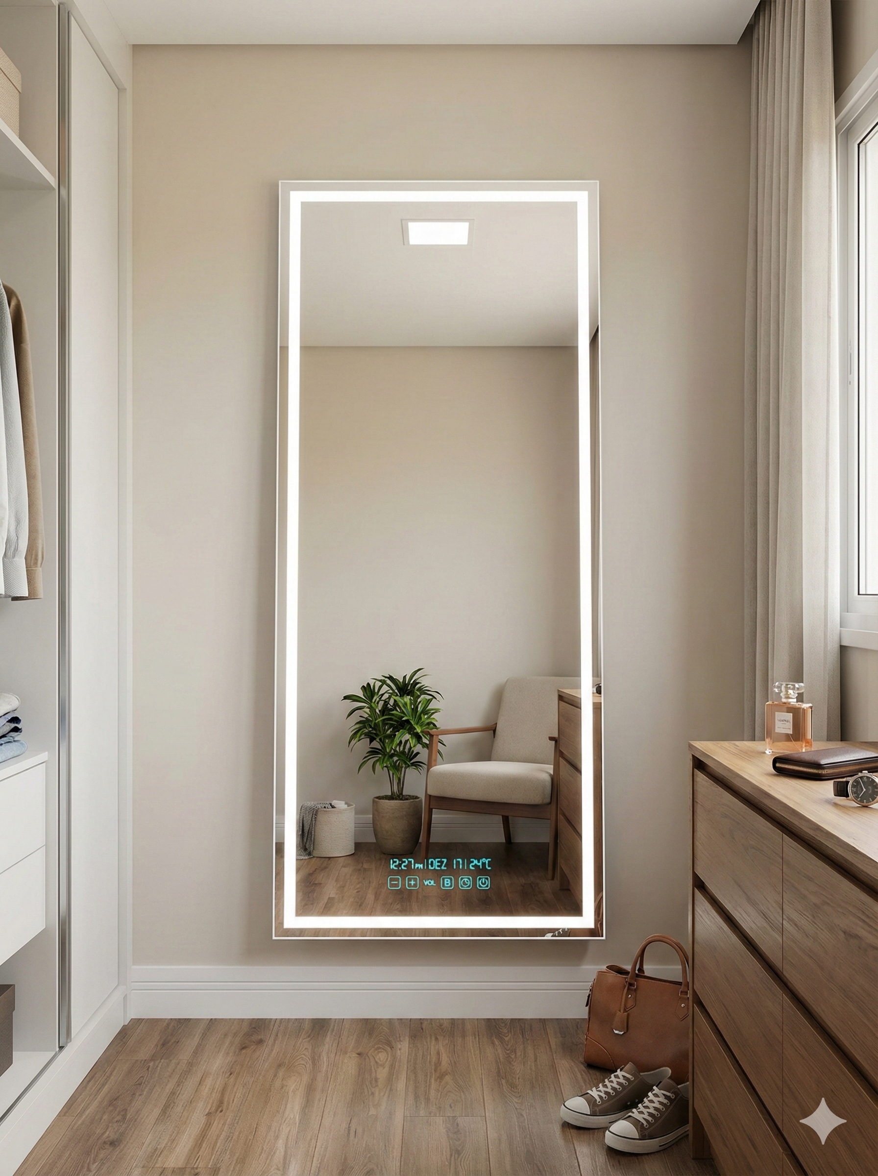 Espelho de Corpo Inteiro com LED e Display Inteligente