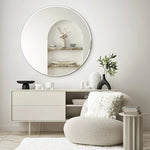 Destaque o interior da sua casa com o nosso Espelho Aurum. Sua forma circular atemporal e a delicada borda preta trazem estilo e sofisticação a qualquer ambiente. Com design minimalista e elegante, este espelho de 85 cm se torna uma peça decorativa ampla e refinada para sua decoração.