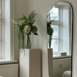O espelho Ivy combina um design clássico com linhas assimétricas, tornando-se um complemento versátil para qualquer ambiente, desde a entrada até o quarto. Suas linhas limpas e simplicidade realçam a estética do espaço, enquanto a elegante moldura de ferro preta e as bordas chanfradas adicionam um toque sutil, porém impactante. Com medidas de 140 x 60 cm, este espelho alongado pode ser usado como peça independente ou fixado na parede, envolto por sua fina moldura de ferro.