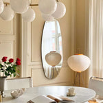O Espelho Ópalo Grande traz um design exclusivo inspirado na pedra ópalo, criando uma atmosfera relaxante e serena. Seu formato oblongo se adapta facilmente a qualquer ambiente, desde a entrada até o quarto, destacando-se sem sobrecarregar o espaço.